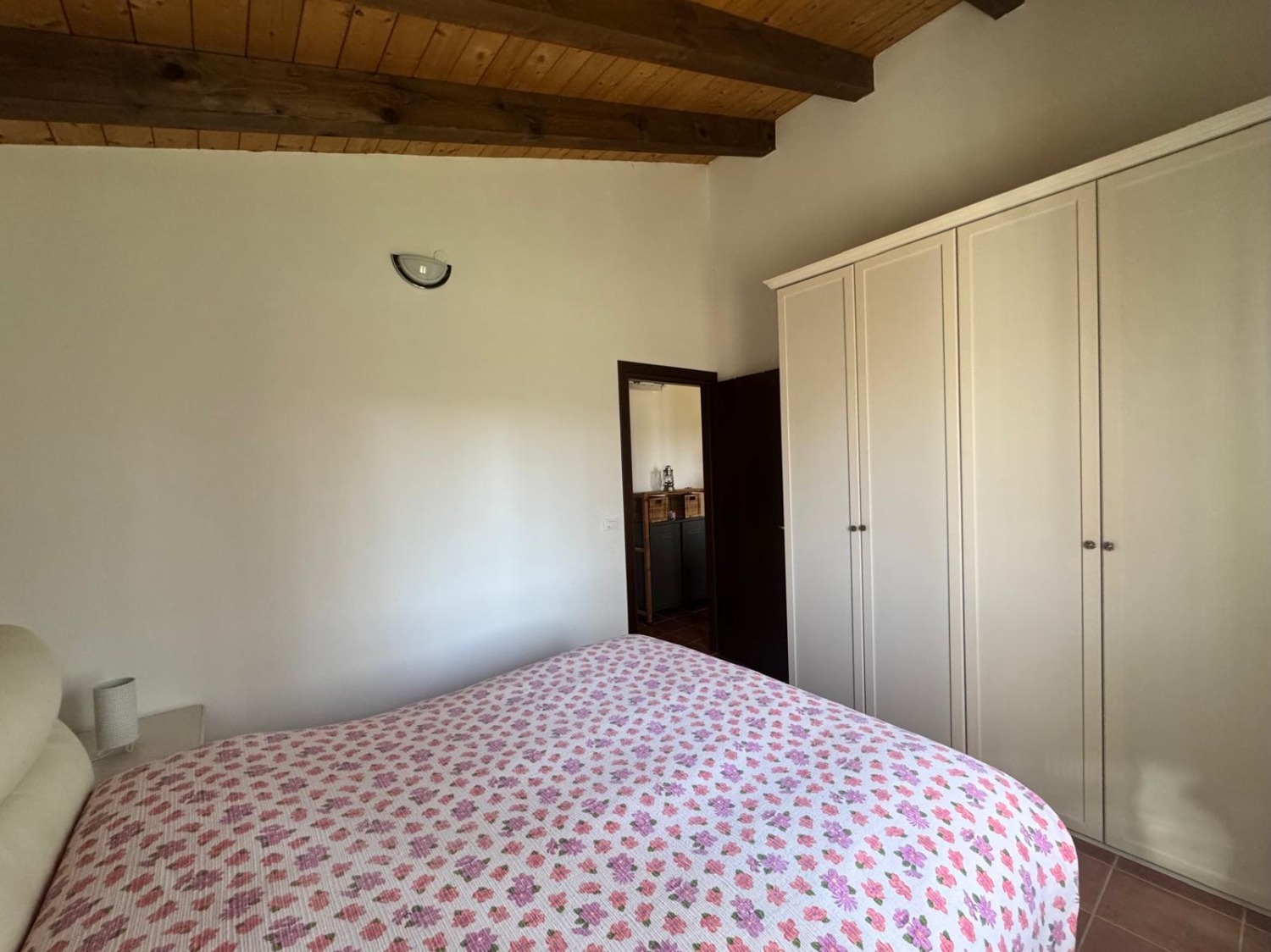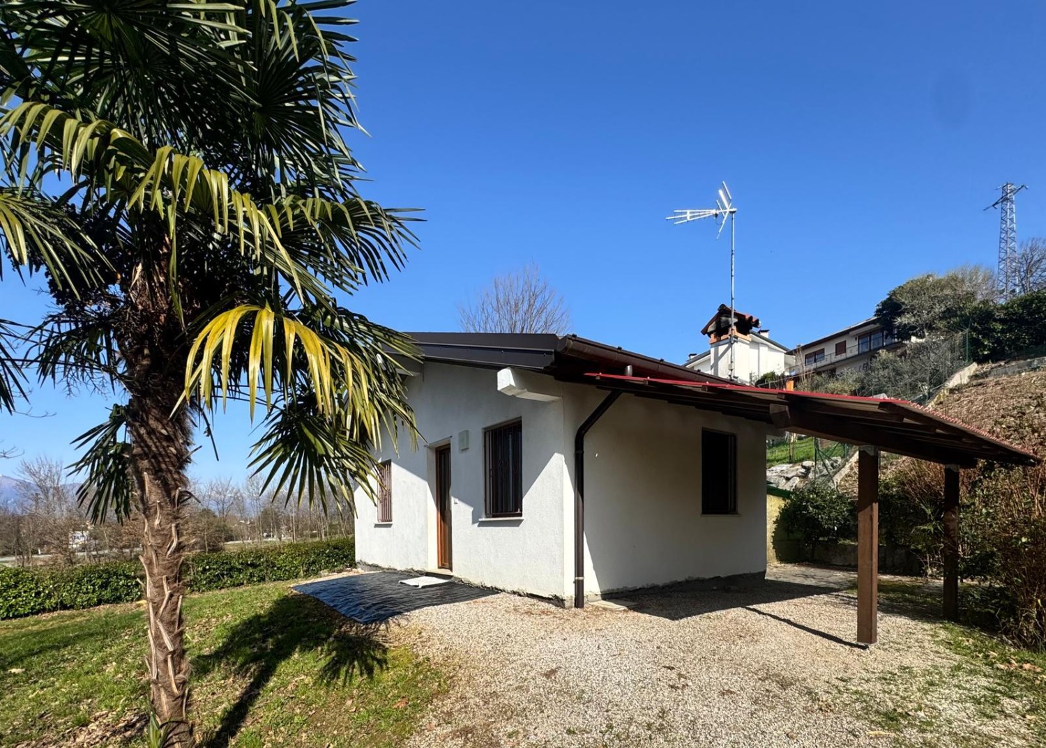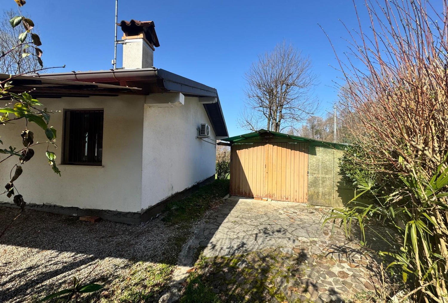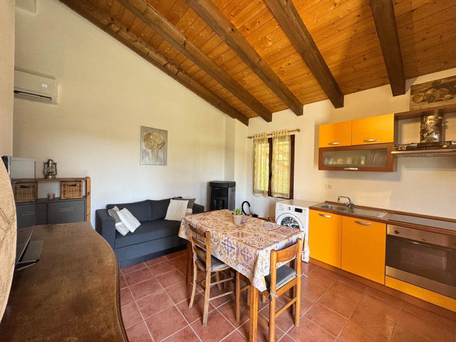 Casetta indipendente di 40 mq totali, composta da cucina, camera matrimoniale e bagno. porticato, cantina e box insistente su grande area verde piantumata di circa 2700 mq. serramenti con zanzariere ed inferriate, riscaldamento tramite stufa a Pellet, e climatizzatore.