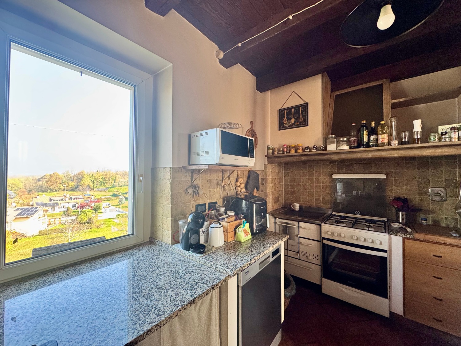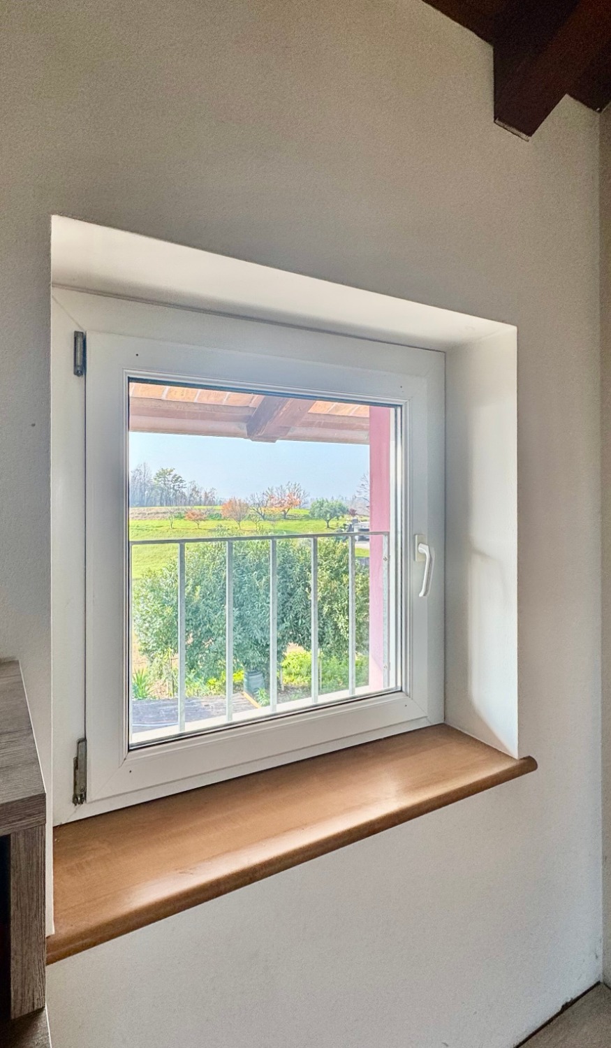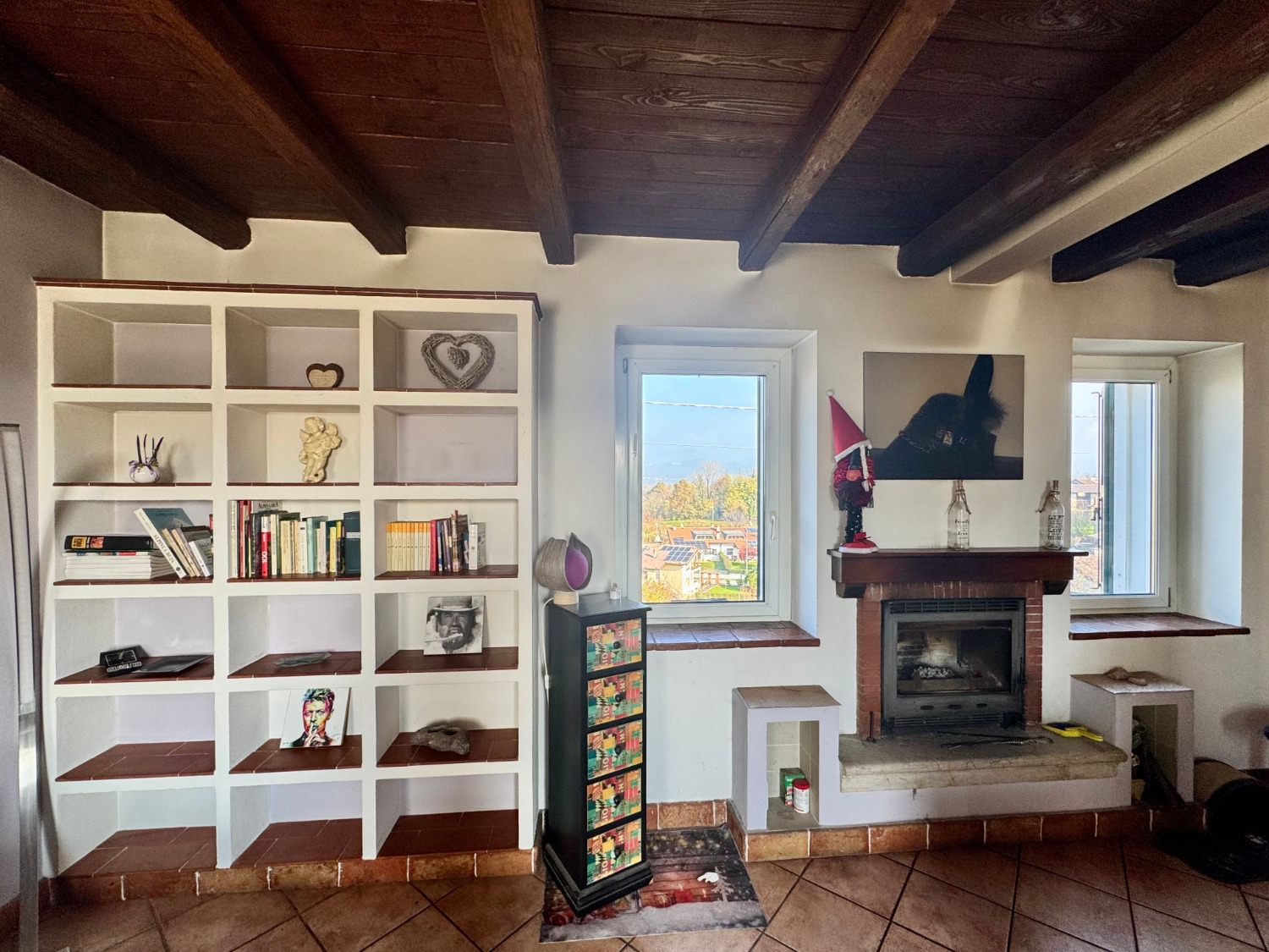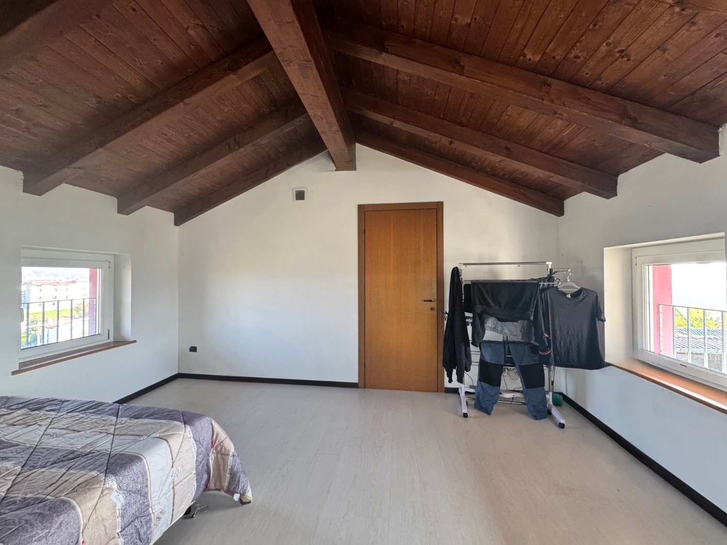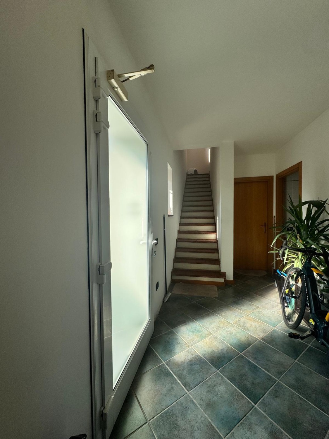 in zona panoramica, ottima casa indipendente accostata da un lato, distribuita su tre livelli, con caratteristiche travature in legno ampia zona giorno, caminetto con ventilazione che serve le camere di cui due matrimoniali ed una singola; due bagni, spaziosa cantina e garage. giardino privato di 110 mq. Impianto fotovoltaico da 5kw